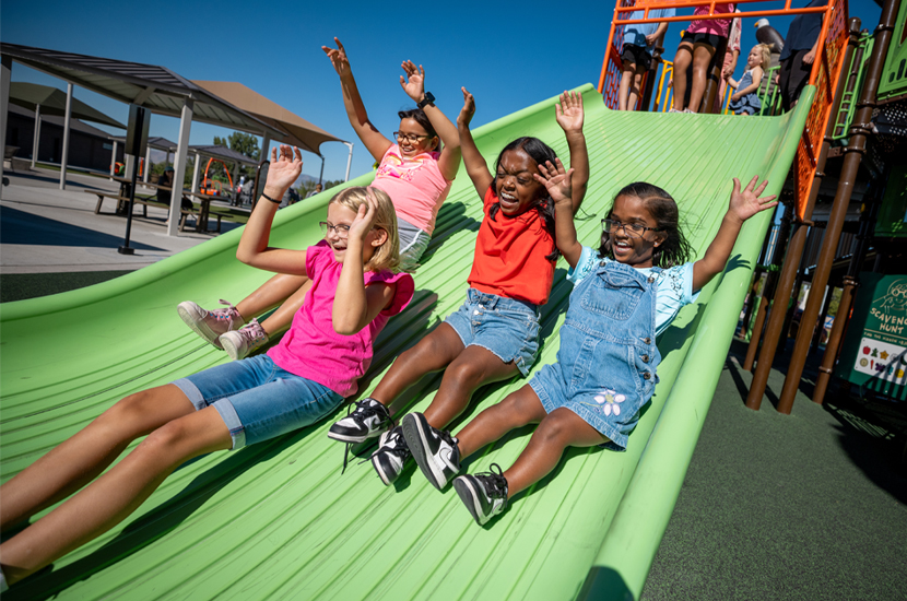 Bring cross-generational fun to your community with Mighty Descent™! With its extra-wide bedway, family and friends of all ages and abilities can unite on this distinct slide.