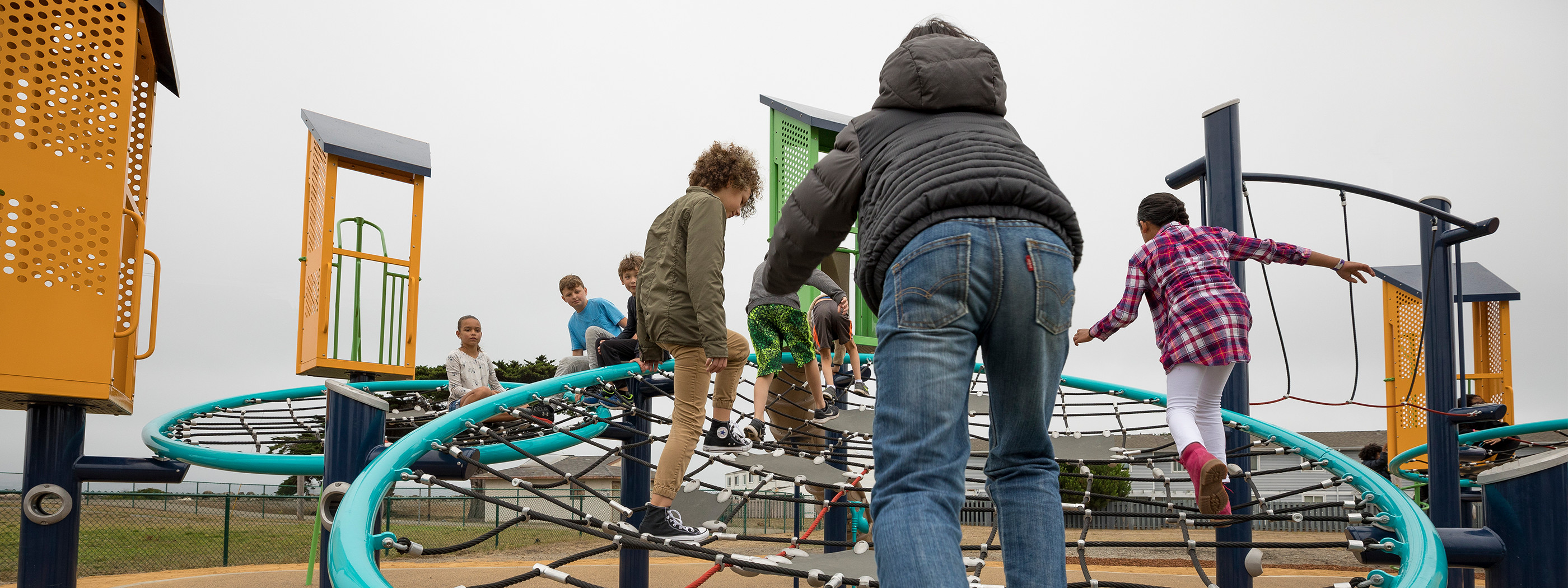 With fewer kids playing outside than ever before, we need to shake things up on the playground and make it an exciting place to be again! By creating play structures that challenge a variety of kids at their own level, we can ensure that nobody is bored and that everybody can play. It might seem impossible to please everyone, but we’ve seen a glimmer of hope with infiNET. The system makes an excellent substitution for post-and-platform structures on an inclusively designed play space because it offers a continuum of play—from ground level events and transfer-height horizontal nets to high, angled netforms and bridges. Because the nets are so expansive and the activities are not prescribed, these structures invite imaginations to go wild and invent new ways to play—and the more ways there are to play, the more kids we can accommodate and retain. While it can be an intimidating change to venture out of the norm of post-and-platform, we believe it’s vital to the mission of saving play. infiNET is just the first stop on that journey.