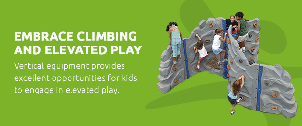 Vertical equipment provides excellent opportunities for kids to engage in elevated play. This equipment encourages safe risk-taking and allows kids to develop essential climbing skills. Some vertical equipment you can incorporate are rope structures, climbing walls or vertical play panels. Other examples of vertical space play ideas are those with overhead play or wall-mounted elements. Use elements like overhead climbers, interactive games and monkey bars.