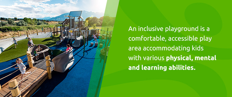 An inclusive playground is a comfortable, accessible play area accommodating kids with various physical, mental and learning abilities. It’s a welcoming and inviting space for every child, parent and family.