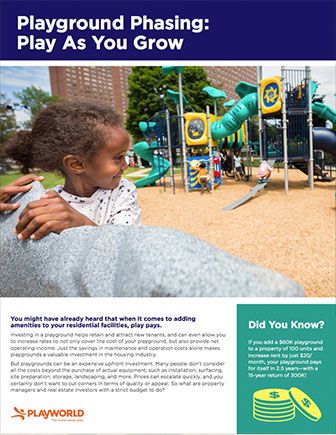 If a step-by-step phasing program doesn’t best suit your needs, consider the Playworld leasing program. This allows you to design, build, and install your completed playground right away, and then pay for it over time. Your community can start reaping the rewards of your playground immediately, while you choose the flexible payment plan that works best for your budget. Our leasing program offers added benefits such as no large, cash down payment, no bank loans that impact your credit line, and a short approval process.