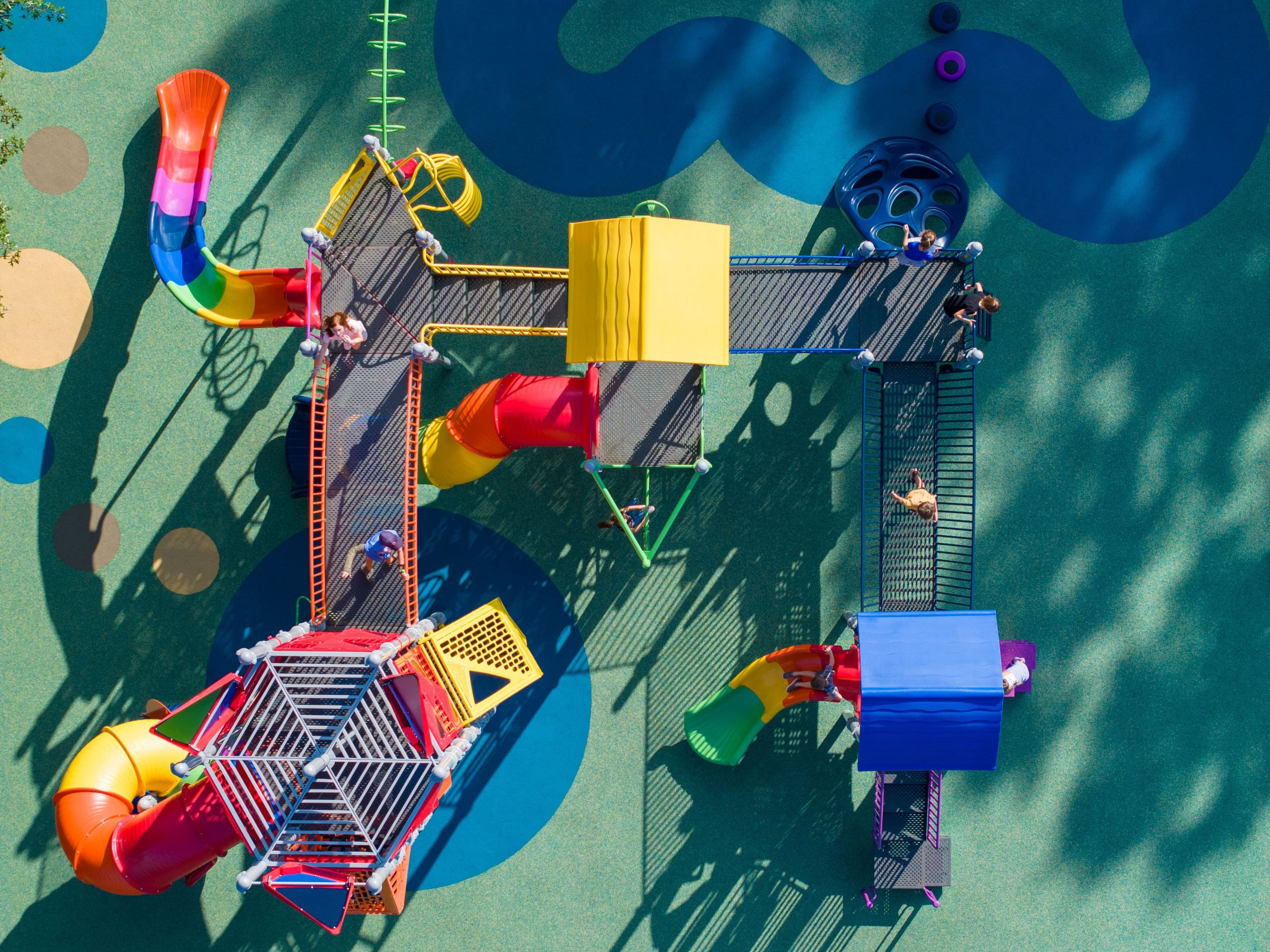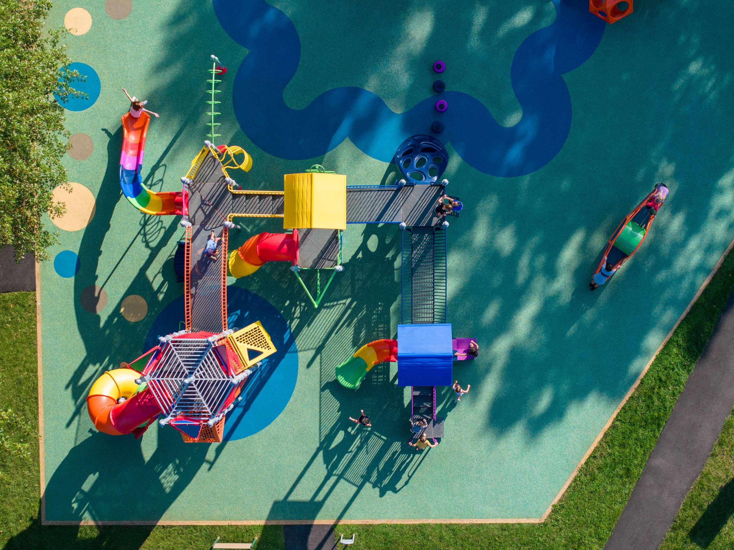 This brand new apartment complex packed a whole lot of play into a small footprint—an investment that will continue to add value and attract new families in the future. It’s the perfect spot for kids of all ages to unite in play.