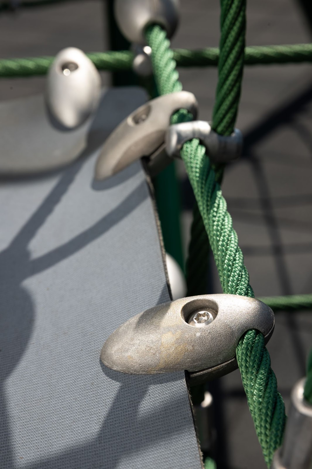 All of our rope climbing activities are made from 5/8″ (16mm) wire rope covered in polyamide yarn (carpet fiber) for superior abrasion resistance and UV colorfastness. Our traditional four-strand design provides the best grip for climbing.