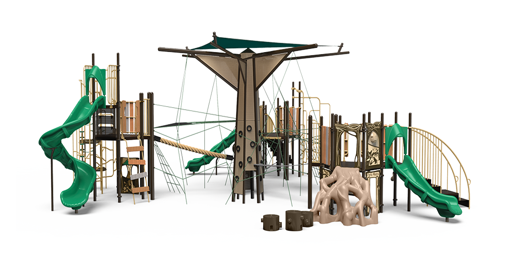 Want to create an immersive, natural experience? Our pre-configured Challengers® and Playmakers® playgrounds incorporate realistic graphic panels, toppers and more for nature-themed fun!