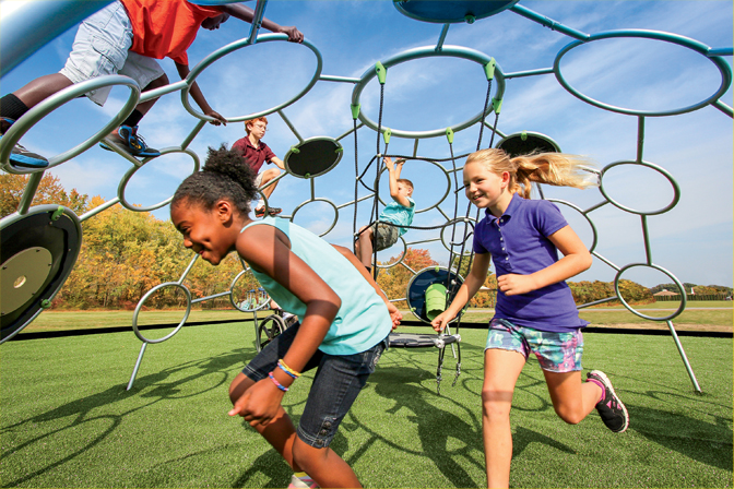 Nature-inspired playground equipment mimics natural elements, textures, and colors found in nature, but the equipment is more durable, easier to maintain, and safer for kids. When set against the landscape, this equipment blends in, making outdoor play second nature.
