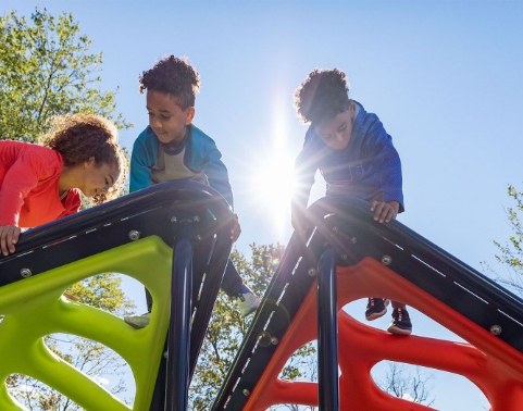 Our new components bring a unique aesthetic and unmatched play value to the Challengers and Playmakers product lines. Choose from exciting climbers, incredible slides, stunning sensory shades, and even an a-maze-ing cozy space to add distinctive flare to your next project!