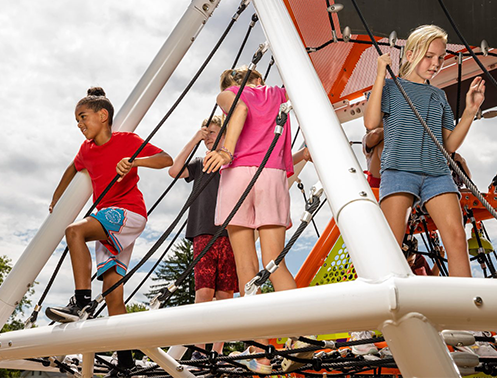 Our hybrid “netform” solution with dynamic climbing challenges and barrier-free platform nets welcomes kids of all ages and skill levels to explore and conquer new territories together.