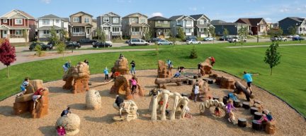 Located in Southwest Regina, Saskatchewan, Harbour Landing is a housing development that operates as a miniature town. Designed to meet the increasing demand for neighborhoods where people can live, work, and play in the same area, the community made the decision to invest bigtime in amenities: which includes 11 parks and 6 playgrounds! Why so many? For one, they enhance land use efficiency. Harbour Landing used integrated solutions to meet municipal and provincial drainage and open space requirements. But the reason for their large play investment goes beyond requirements. The developer truly realizes the value and ROI of play.