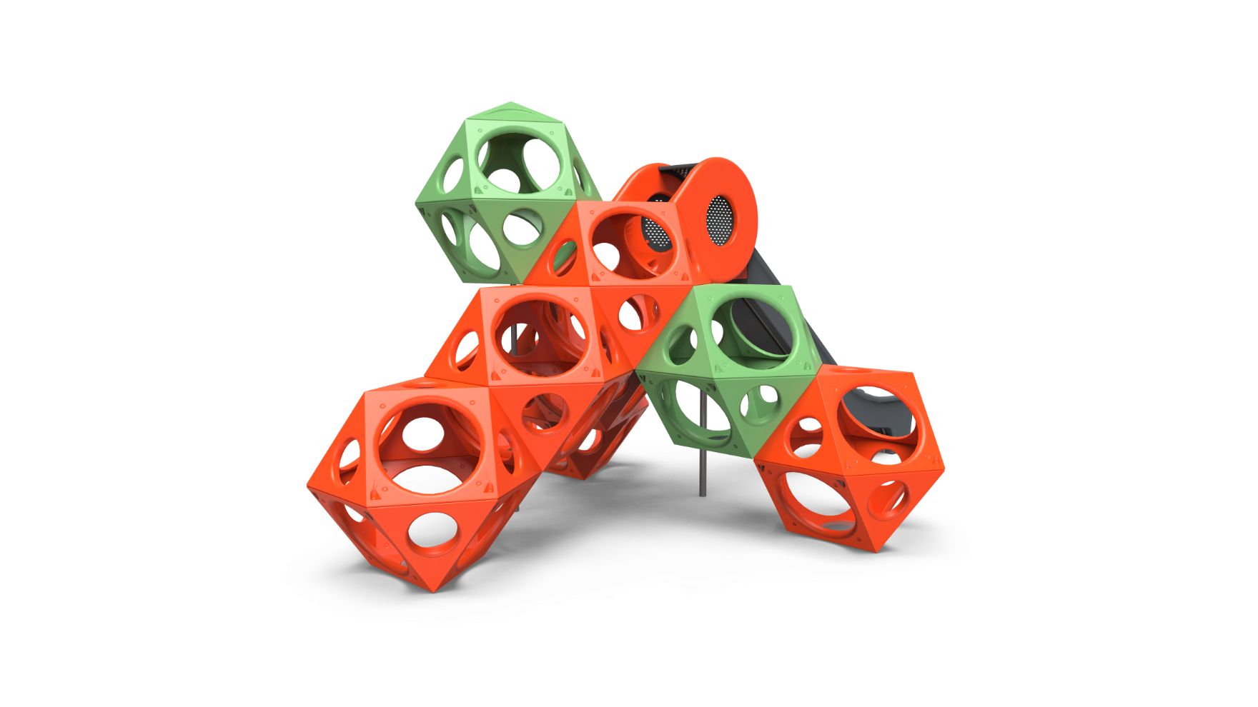 When you combine sculptural play with a playground classic, what do you get? A fantastic new favorite! Simple and irresistible,PlayCubes are based on the iconic creation of prominent architect/designer Richard Dattner – redesigned for even more physical, social and cognitive play value and engagement. The distinctive form invites imagination and exploration with undefined paths and varying handholds for climbing. A network of negative spaces invites kids to play in, on, and through. And the slide offers a familiar focal point for added excitement, play flow and fun. Bring a totally unique, immersive play experience to your playground with smart, innovative play design - ready for climbing, sliding, and discovering!PlayCubes Sensory Additions are available to add distinct tactile, visual, and auditory engagement for kids of all ages and abilities.&edsp;&edsp;