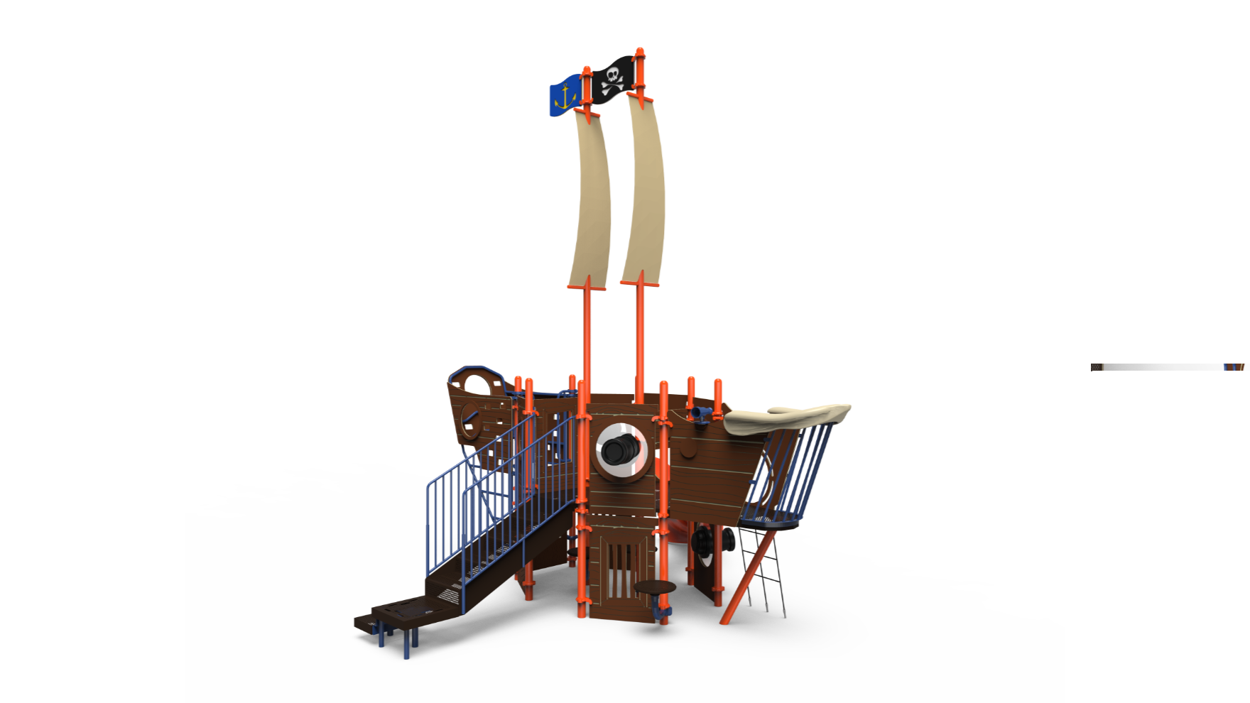 This nautical-themed playground features a Nautical Dynamic Descent Slide, Stern & Bow Climbers, Porthole & Drum Cannon Panels, and two sails; all enhancing the nautical-theme of this playground. Playworld themed playgrounds have oodles of authentic themed play activities – and therefore extra play value - not just a façade of barriers.&edsp;&edsp;