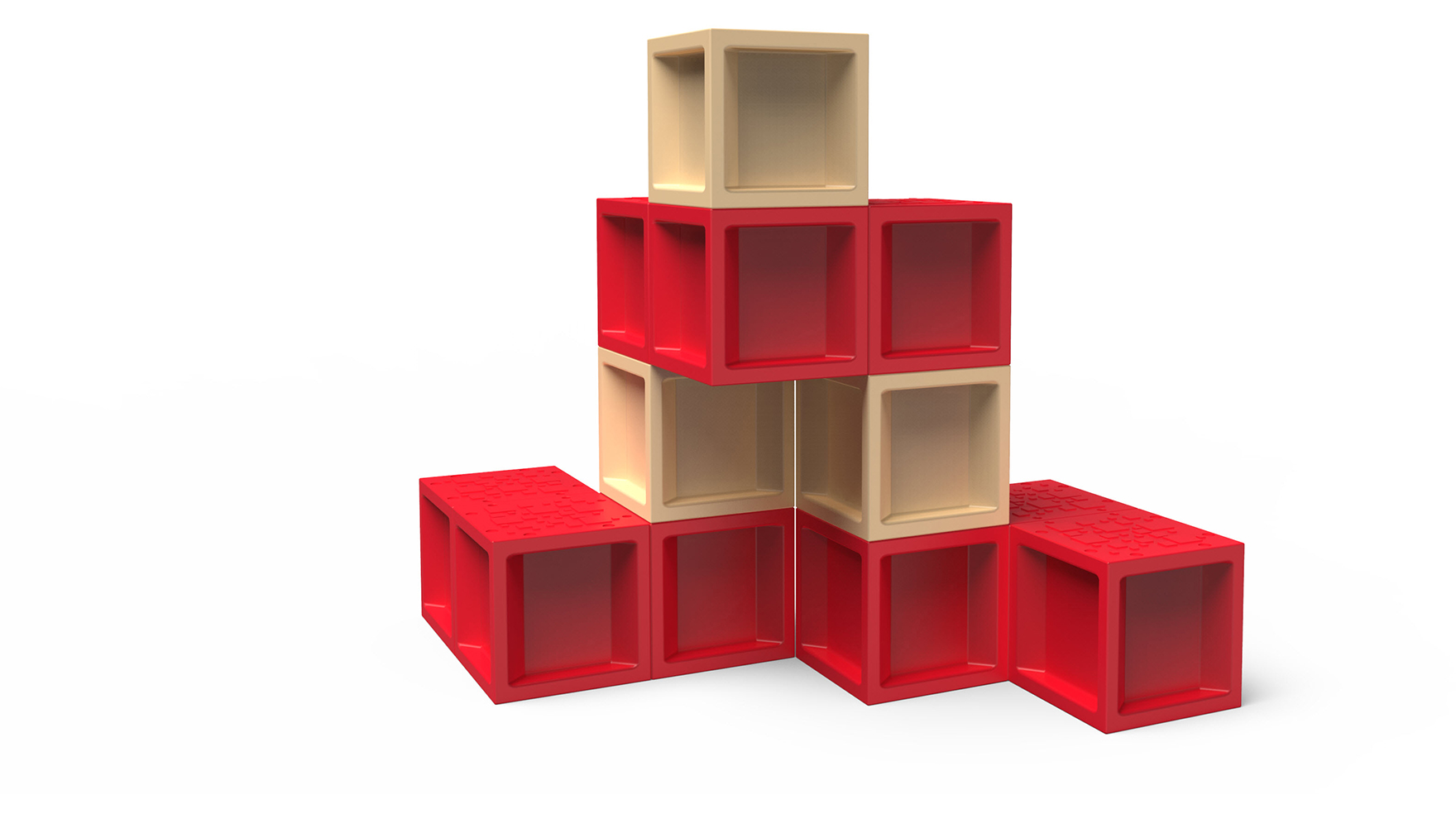 “Ledges” all around blocks provide areas for fingers to grasp for easier climbing.