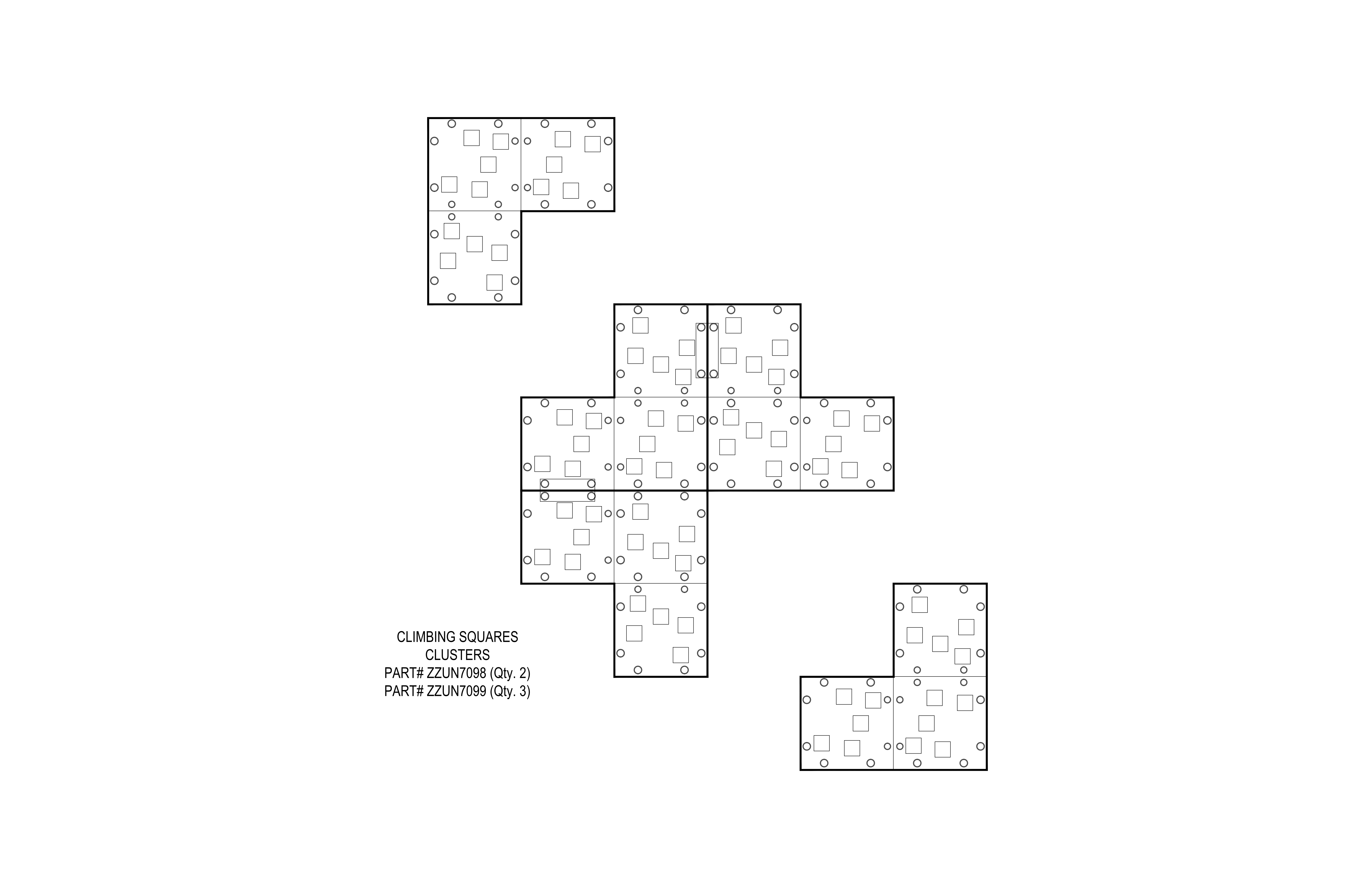 Go island hopping among these three Climbing Squares clusters! Take a flying leap over the sea or sit to watch the waves roll in. • Enables kids to easily assume a 3-point climbing stance for balance and safety • Fosters imaginative play and creates social opportunities where kids work together to establish rules, manage conflict and learn • Allows children and caregivers to play and interact with each other • Provides easy access to highest point when caregiver assistance is needed.
