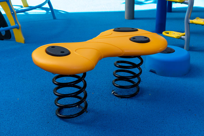 Kids can bounce and 'surf' on Nucleo for a fun ride that promotes balance and coordination. Its range of motion is determined by child's weight. Use multiple Nucleo's to play-functionally link two playground structures together.