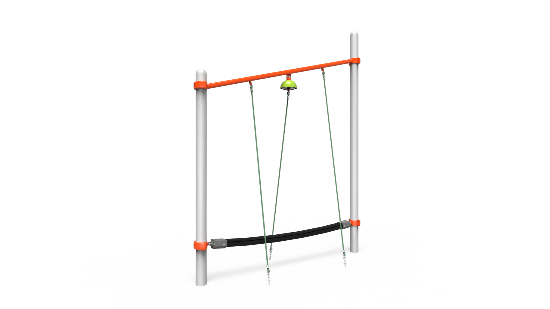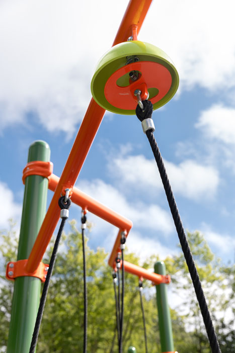 Complete this daring challenge by balancing across the rubber beam. Ropes featured on either side assist beginning climbers while offering additional climbing opportunities for advanced users. A bell sits above the center, adding sensory experience to the play while encouraging kids on their adventure.