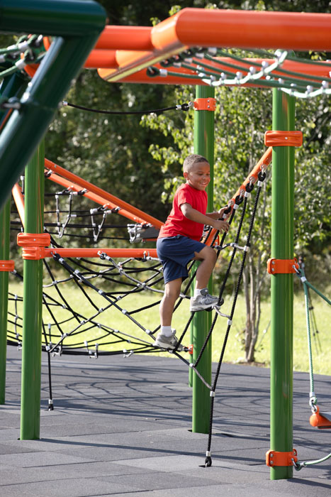 Kids can experiment with their climb in all kinds of ways using this twisted net! An additional rope attached between the end two poles motivate kids to be creative and bold as they test and strengthen their skills.