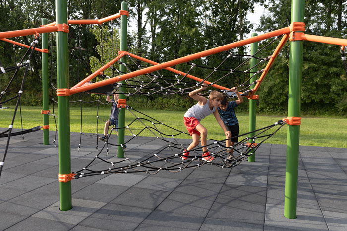 Two nets offer a layered climbing experience with grid-patterned design and strategically placed openings to climb through. Complete with an Angled Flag, this component promises challenge and a sense of accomplishment to every daring climber.