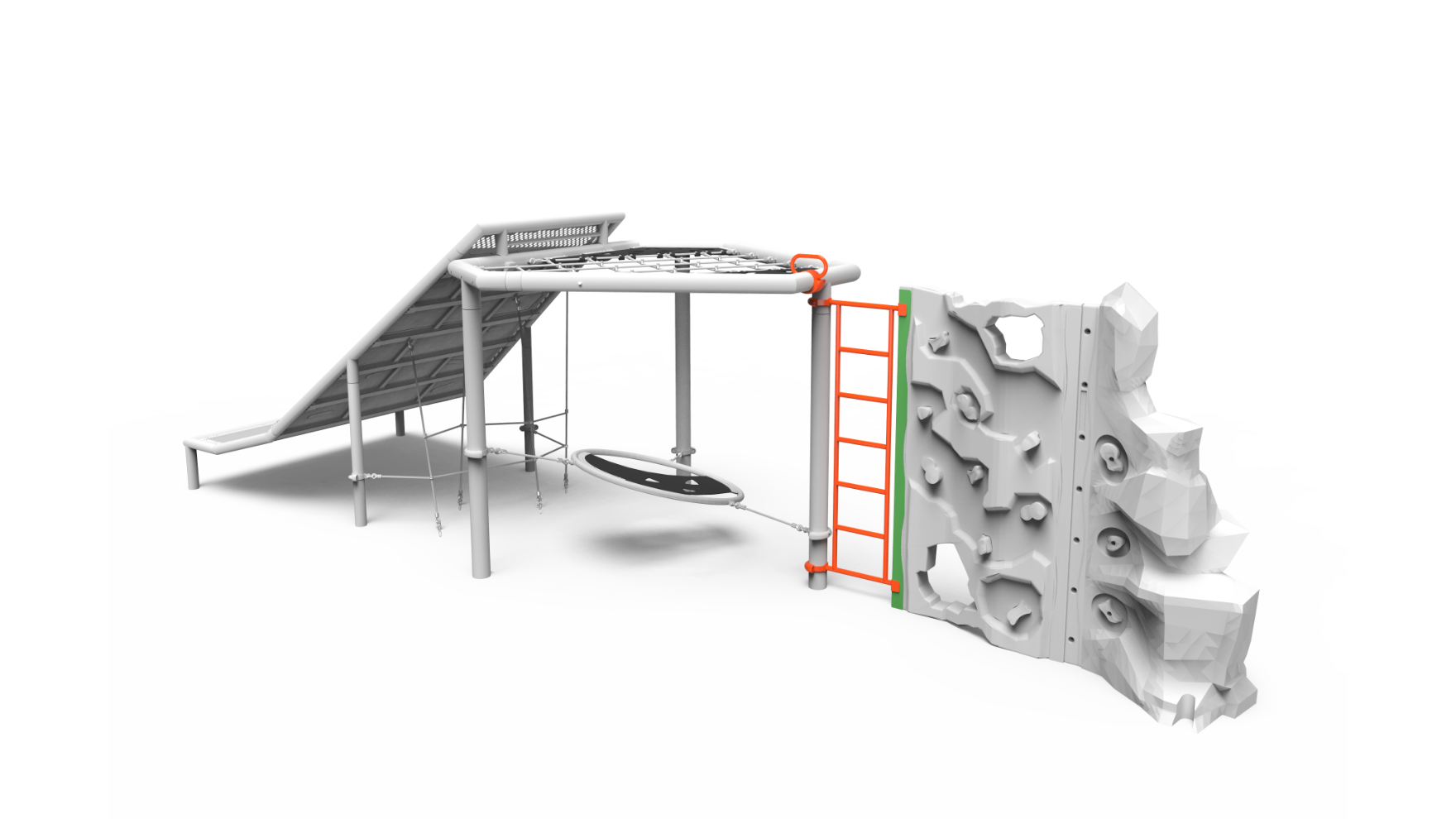 Connect PlayHills Tri Hub and RockBlocks using this link to create a distinct, cohesive layout that kids can adventure across together. Kids can use the straight ladder to climb their way from one play event to the next, building their strength and coordination as they explore.