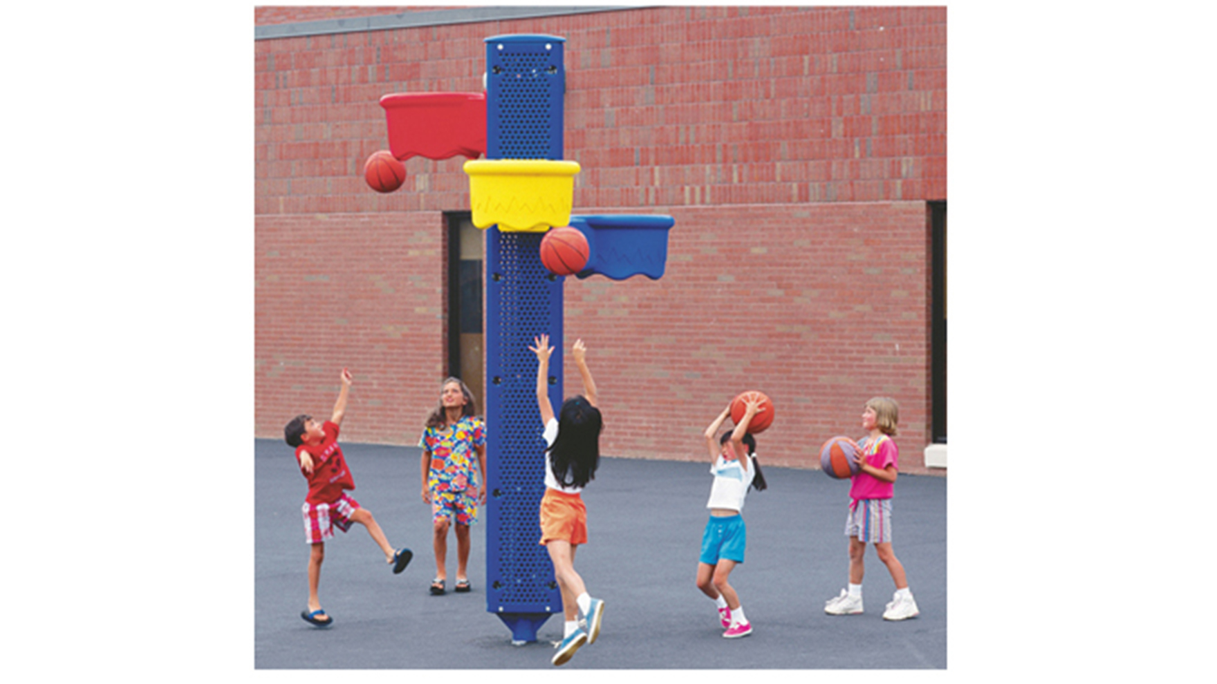 The perfect inclusive activity; adjustable baskets let everyone in on the fun. Central post is available in any coated steel color. Baskets are available in up to three plastic colors.