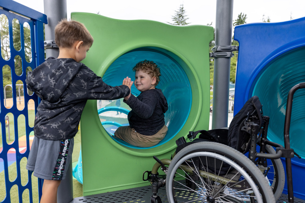 Clear, durable window allows children to see out and adults to see inside. Add one or more straight window sections to your tube slide. Skyward-facing window allows light inside tube.