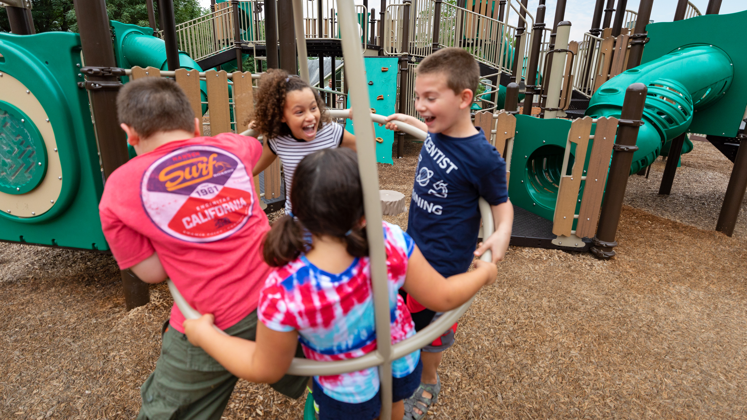 Fun comes full circle while kids stand and spin for a vigorous ride on the Vortex.