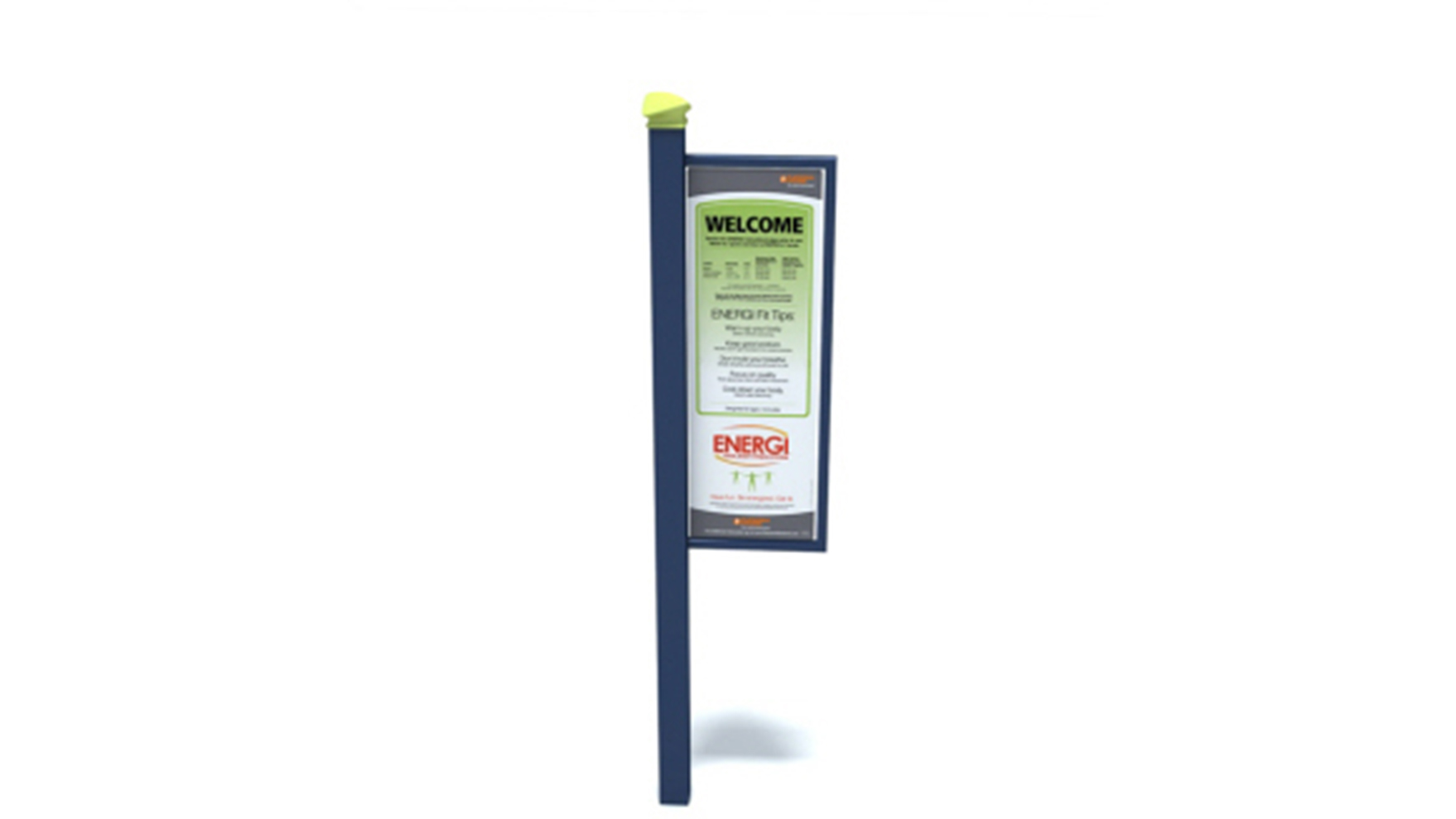 Also available in a 2-sided version, where the second side is a custom sign. Shown in a surface mount version. Also available in an in-ground mount option.