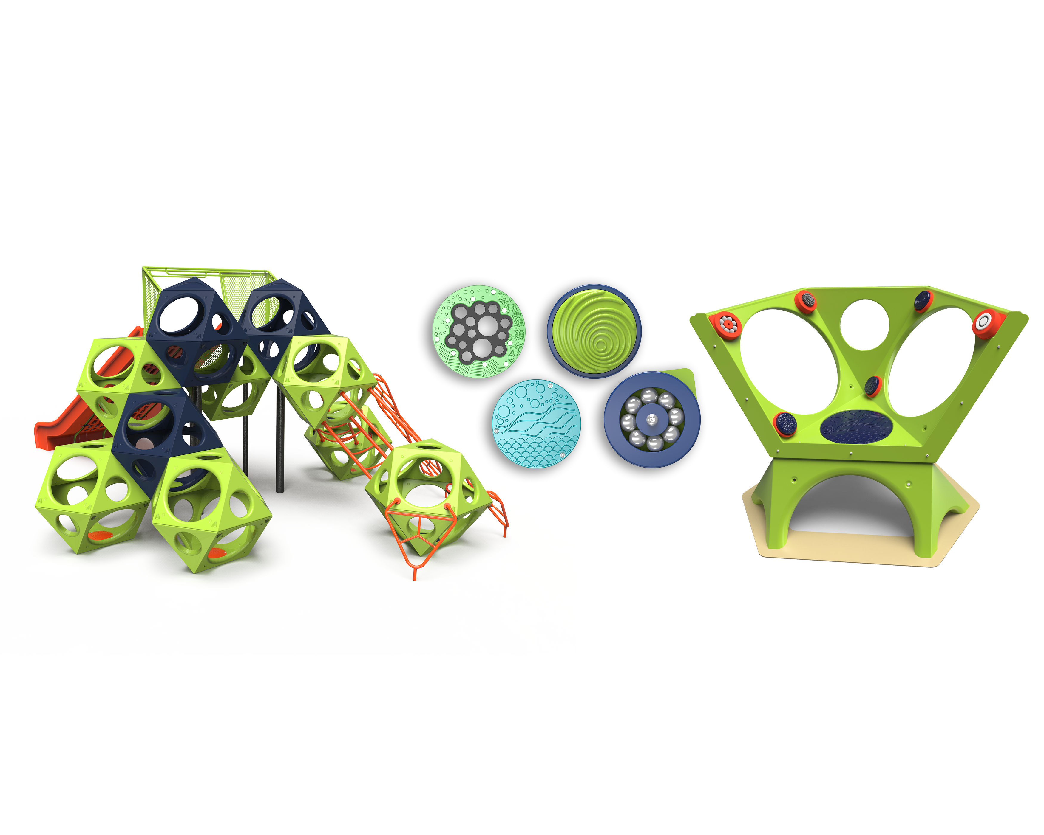 PlayCubes® Sensory Additions make tactile, visual, and auditory engagement easy for all kids to experience! From spiraling spinners to a textured floor insert, these components inspire greater interaction not only on the playground, but within the community.