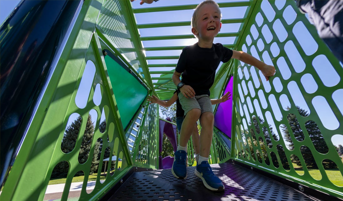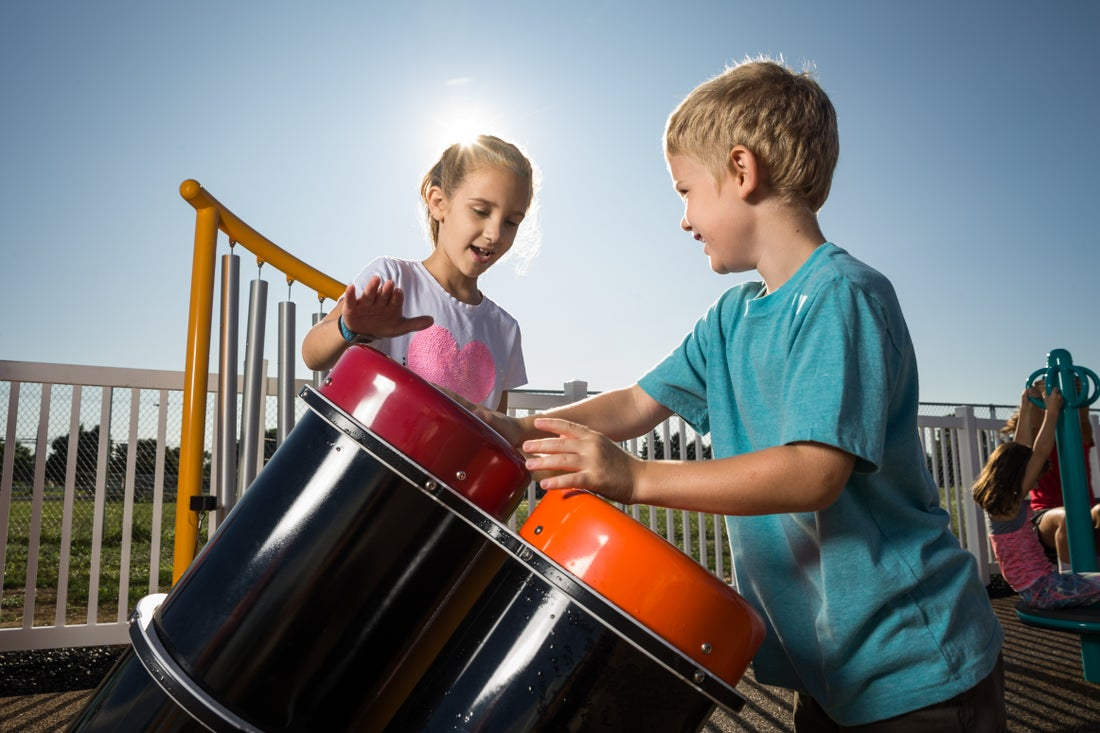 For most children, though, sound tends to be controlled by parents and teachers. Kids are often told what sounds are acceptable, how loud they can be inside, and when they can make noise. Auditory equipment on the playground lets children make their own sounds. Some kids especially love being loud on the playground, where grown-ups don’t have to tell them to quiet down.
