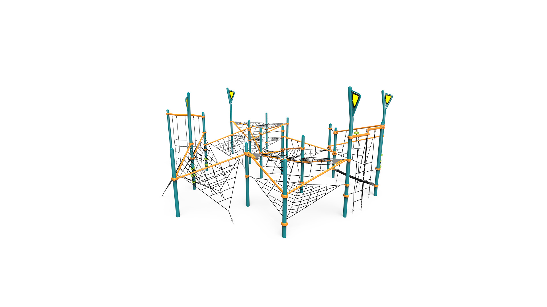 Two nets offer a layered climbing experience with grid-patterned design and strategically placed openings to climb through. Complete with an Angled Flag, this component promises challenge and a sense of accomplishment to every daring climber.
