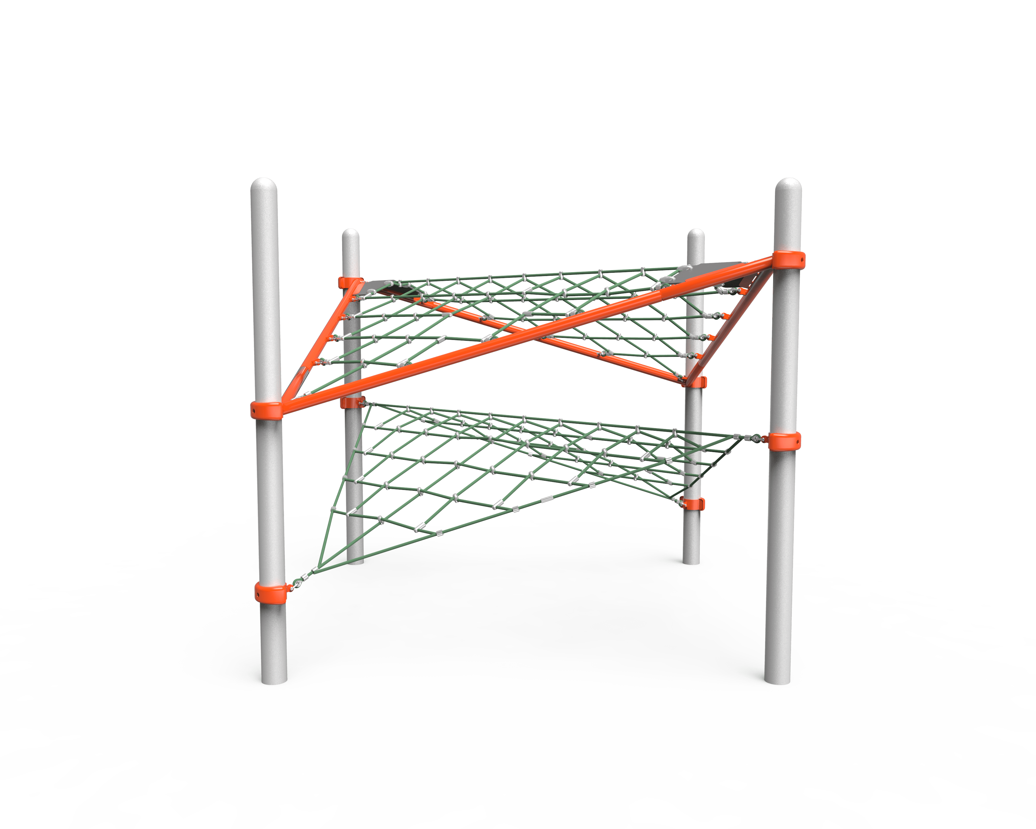 Kids can experiment with their climb in all kinds of ways using this twisted, grid-patterned net! Whether in a Single or Double configuration, an additional rope attached between two poles motivates kids to be creative and bold as they test and strengthen their skills.