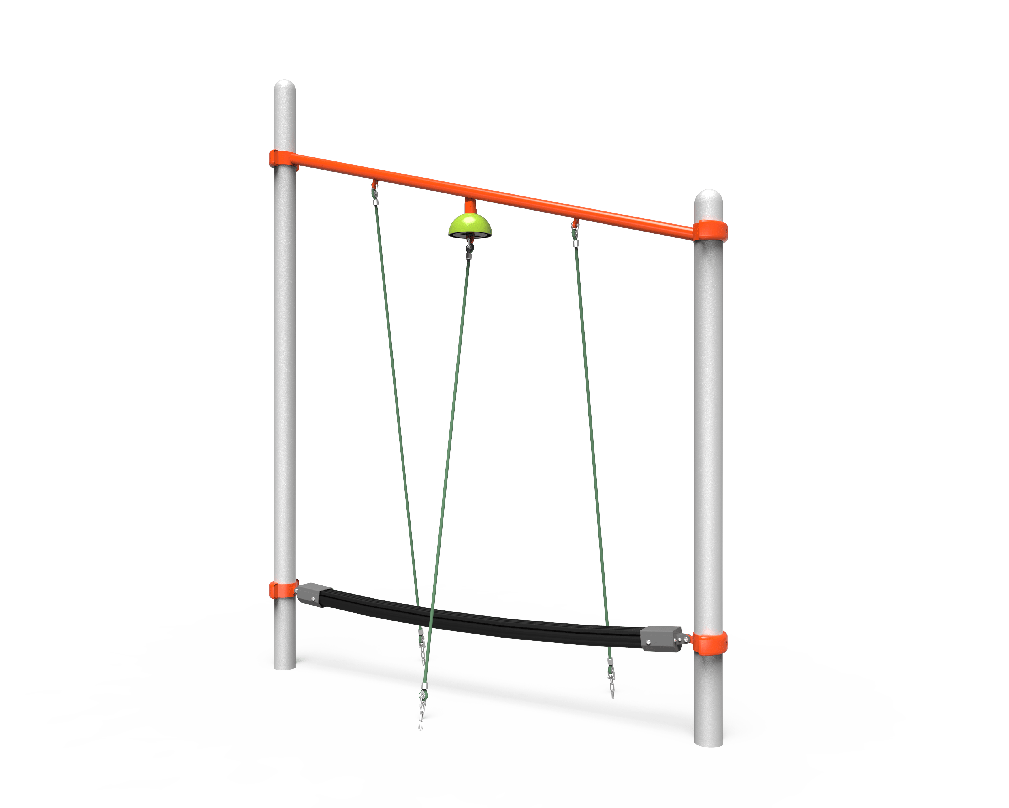Complete this challenge by balancing across the rubber beam. Ropes featured on either side assist beginning climbers while offering additional climbing opportunities for advanced users. A bell sits above the center, adding sensory experience to the play while encouraging kids on their adventure.